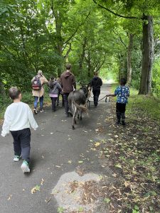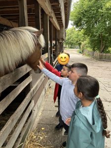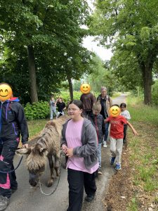 Ein ganz besonderer Ausflug führte unsere JüL-Klassen der Leonhardstraße kürzlich auf einen Schulbauernhof – ein Erlebnis, das für viel Begeisterung sorgte! Die Kinder konnten zahlreiche Tiere hautnah kennenlernen, sie streicheln, füttern und sogar mit den Eseln Paul und Karlotta spazieren gehen. Ob Ziegen, Schafe oder Kaninchen – der direkte Kontakt mit den Tieren bereitete allen große Freude. Auch das Spielen kam nicht zu kurz: Auf dem Hof konnten die Kinder nach Herzenslust klettern, Trampolin springen und sich austoben. Zur Stärkung gab es am Ende des Tages leckere, selbstgemachte Pizza – ein weiteres Highlight des Ausflugs. Ein Tag voller Abenteuer, Naturerlebnisse und strahlender Kinderaugen – wir danken dem Team des Schulbauernhofs für dieses tolle Erlebnis!